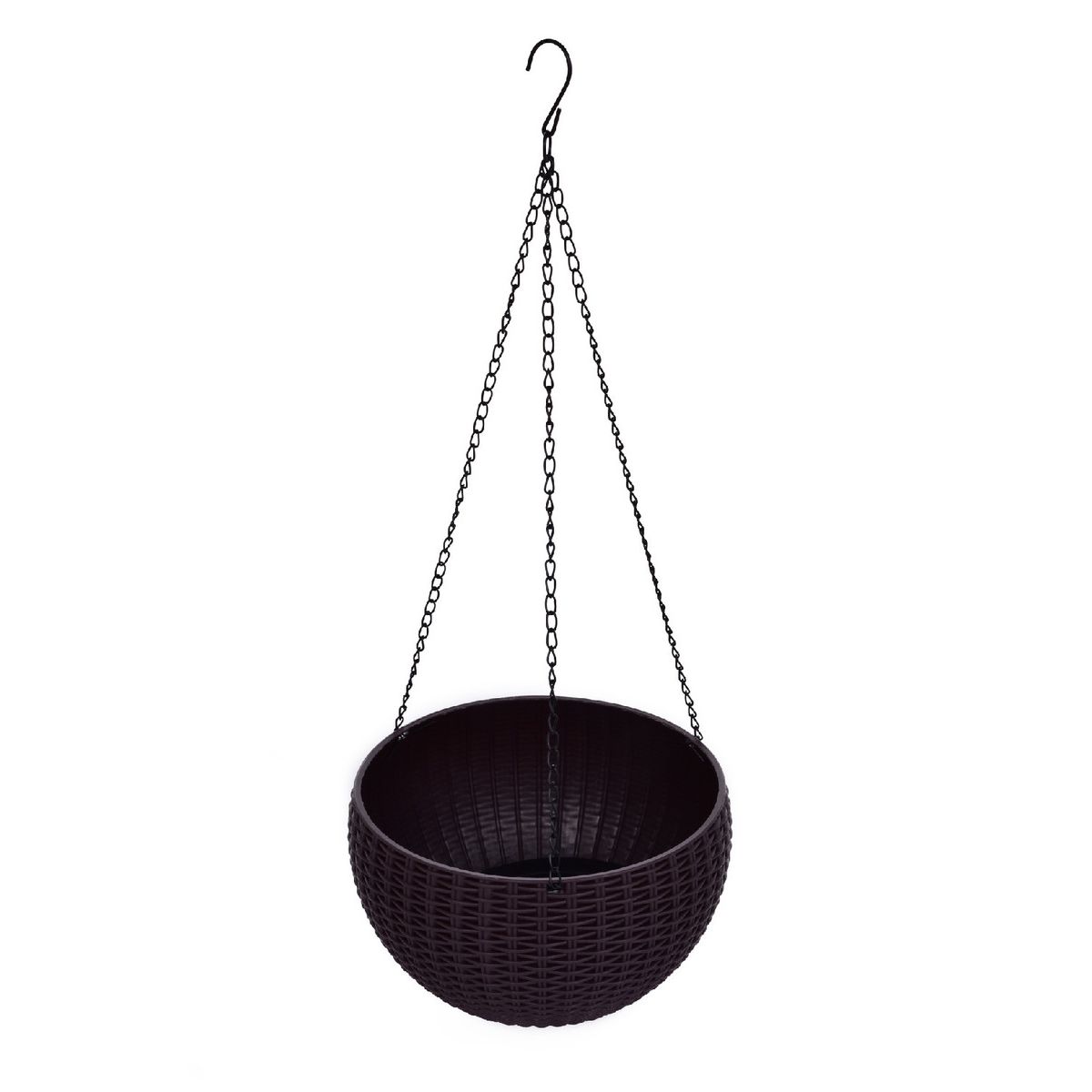 ZÁVĚSNÝ SAMOZAVLAŽOVACÍ KVĚTINÁČ imitace ratanu, součástí je vyjímatelné samozavlažovací dno a kovový řetízek na zavěšení, ve spodní části vypouštěcí uzávěr. Vyrobeno z odolného plastu. Průměr 22 cm, výška 13,5 cm.