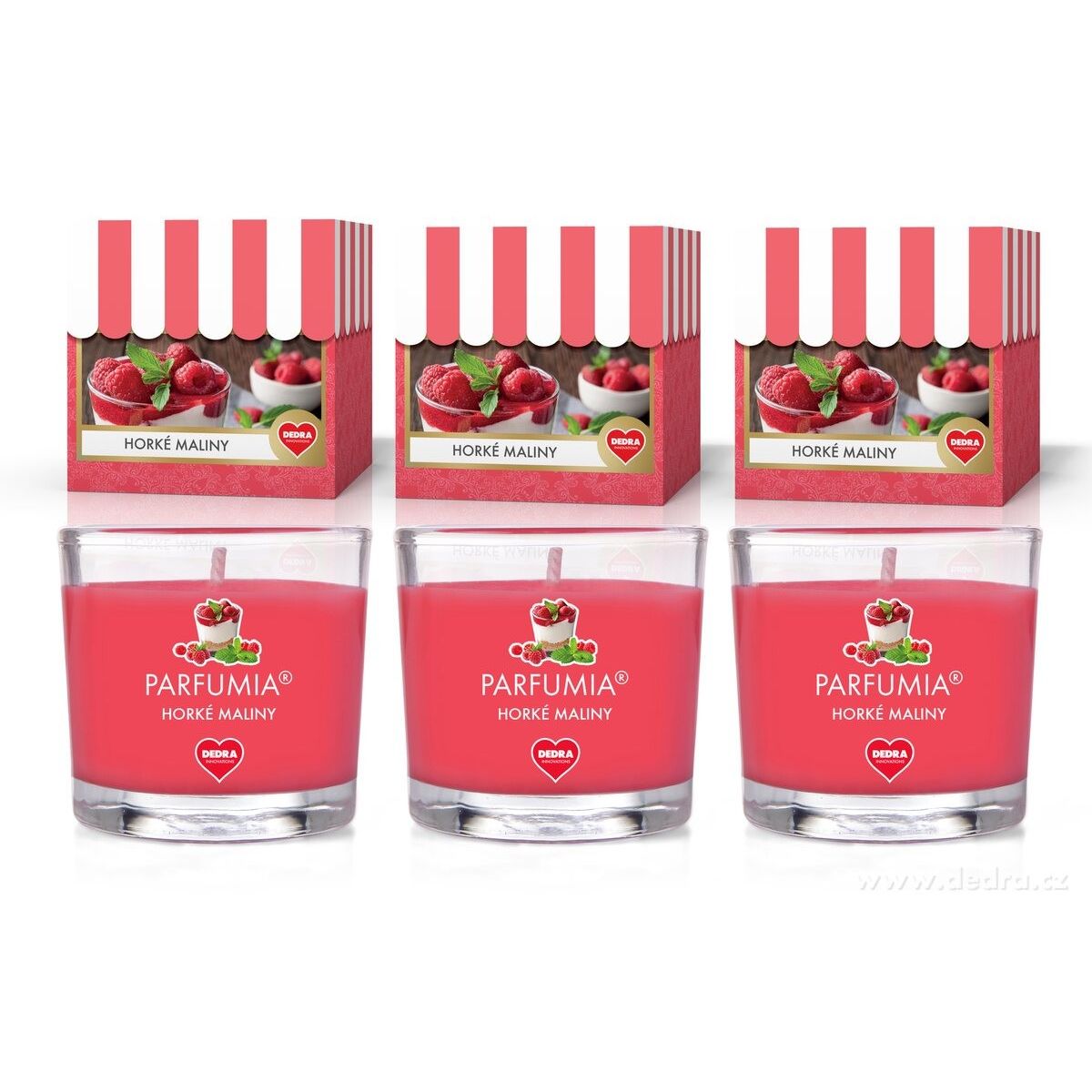 HORKÉ MALINY | sada 3 votivních svíček | PARFUMIA® | 3×55 ml