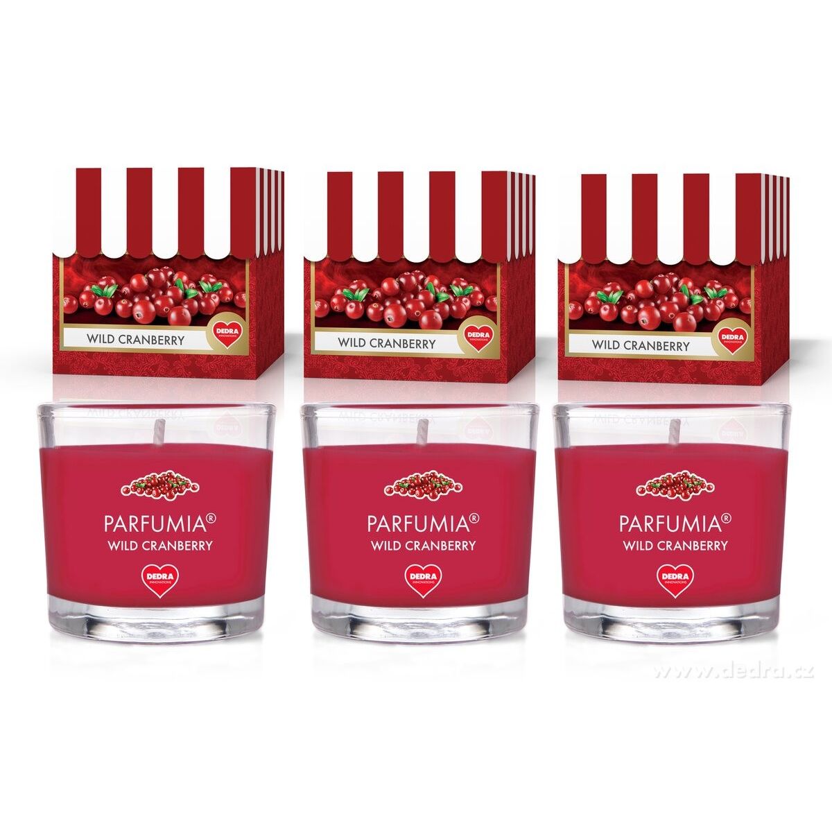 WILD CRANBERRY | sada 3 votivních svíček | PARFUMIA® | 3×55 ml