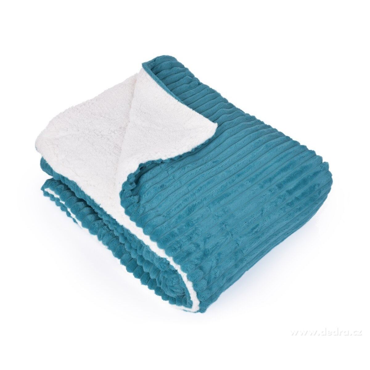 z jedné strany reliéfní lagoon velvet a z druhé strany imitace hebounké beránčí vlny s vysokým vlasem z mikrovlákna.
