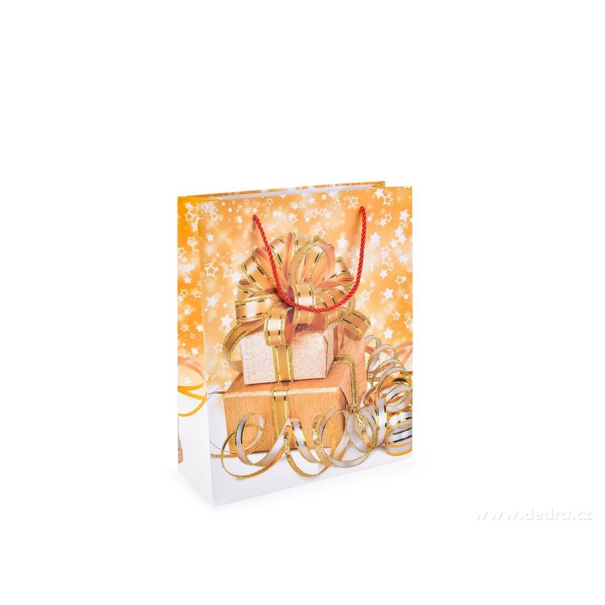 Dárková taška, motiv zdoben zlatými třpytkami