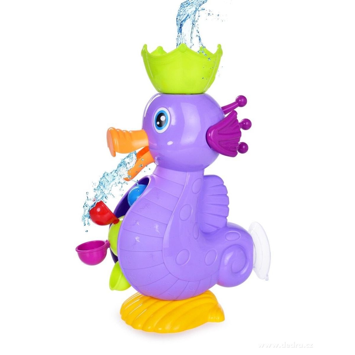 HRAČKA DO VODY s otočným vodním mlýnkem a korunkou, součástí konvička na nalévání vody, lze připevnit pomocí přísavky na hladké plochy.Vyrobeno z odolného plastu. Rozměry cca š 16 x h 9,5 cm.