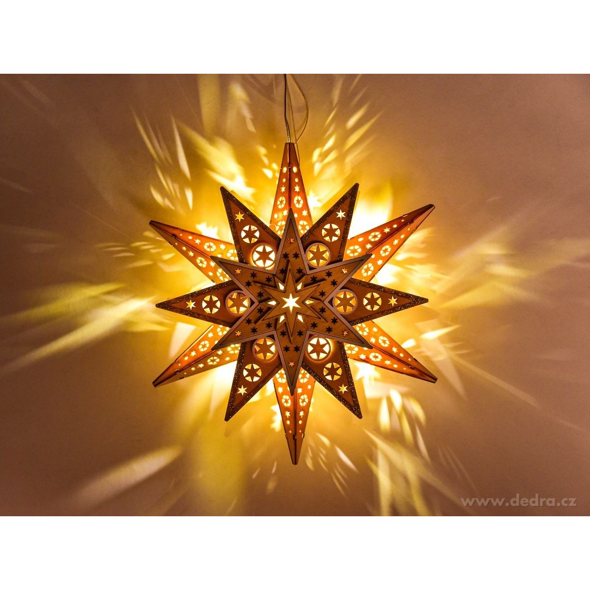 Elegantní závěsná dřevěná hvězda s LED osvětlením vnese do interiéru pocit klidu a pohody. Díky oboustrannému provedení září ze všech stran a vytváří prostorový světelný efekt, který krásně rozzáří místnost i zimní večery.