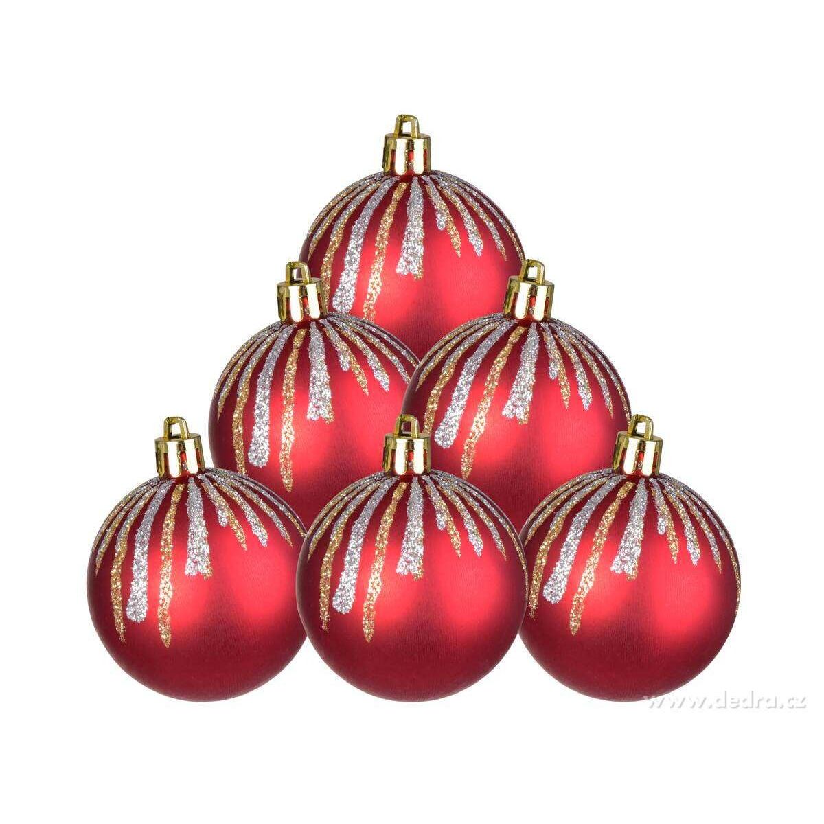 LEDOVÝ SEN | sada ozdob | 6 ks | červené koule se zlato-stříbrným dekorem