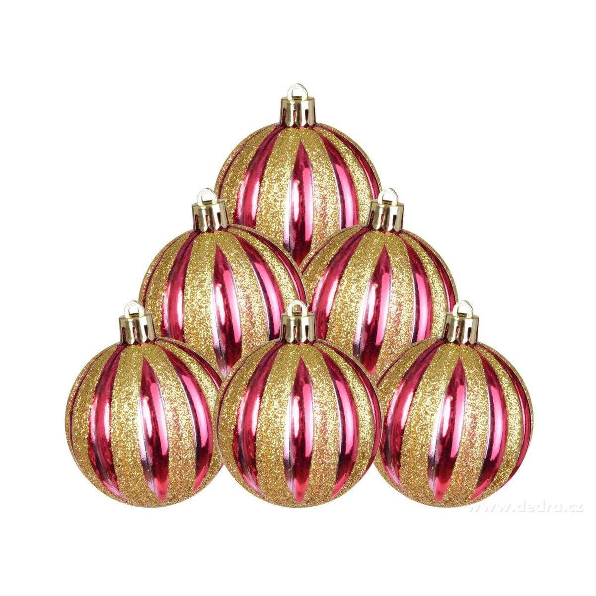 ZLATÉ PRUHY RADOSTI | sada ozdob | 6 ks | červené koule se svislými zlatými pruhy