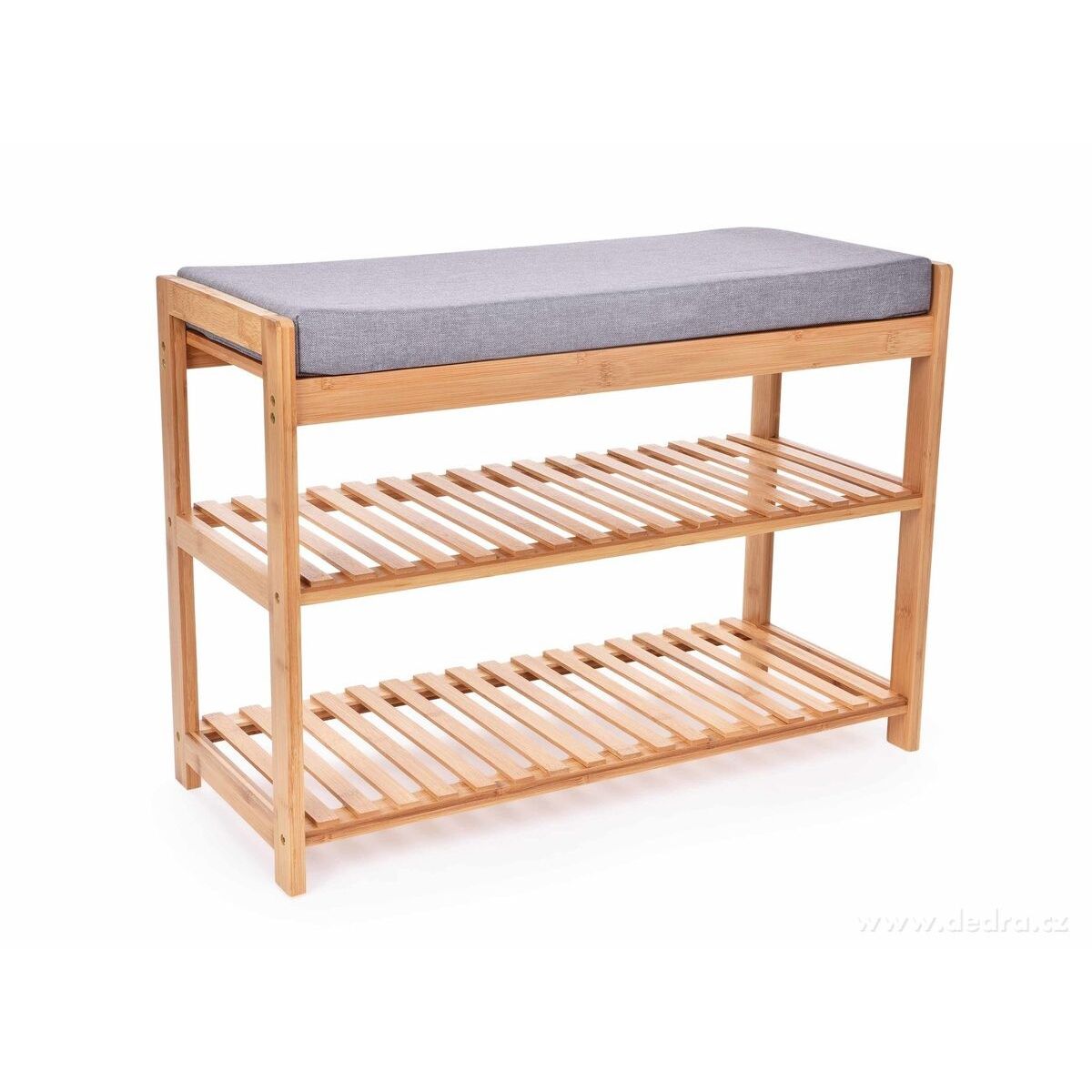 BAMBUSOVÝ BOTNÍK/LAVICE s polstrovaným sedákem a 2 policemi.Rozměry: š 70 x h 30 x v 50 cm