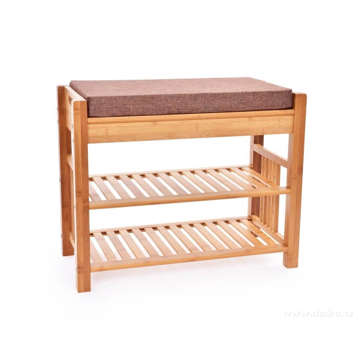 BAMBUSOVÝ BOTNÍK/LAVICE s polstrovaným sedákem a 2 policemi, z boku praktický šuplík např. na kartáč či krém na boty. Rozměry: š 61 x h 29,5 x v 49 cm