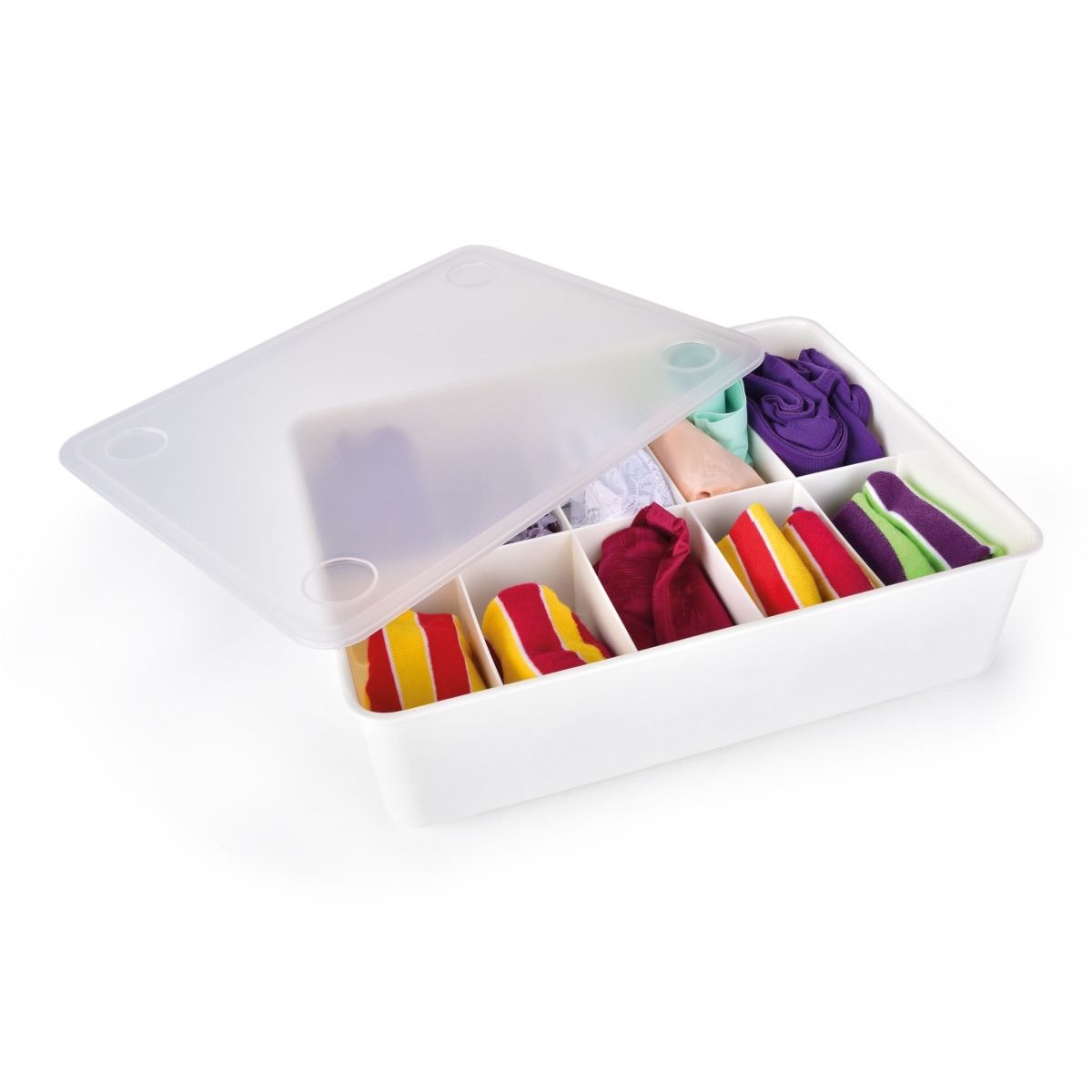 PRAKTIK | plastový organizér s transparentním víkem | 10 přihrádek
