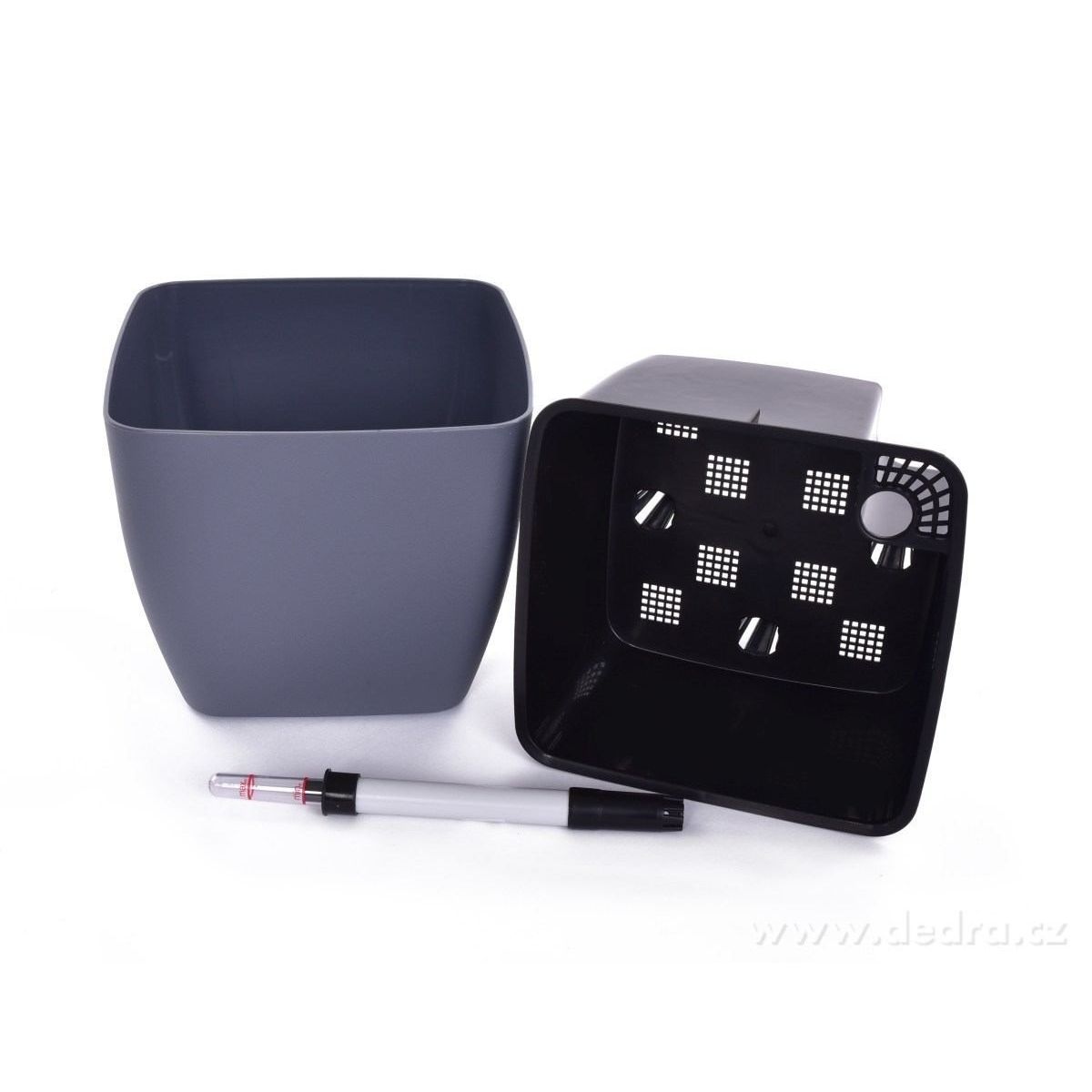 SAMOZAVLAŽOVACÍ KVĚTINÁČ antracitový, volně stojící, se zavlažovacím systémem a vyjímatelnou vložkou.Vyrobeno z odolného plastu. Rozměry: š 15 x h 15 x v 13 cm.