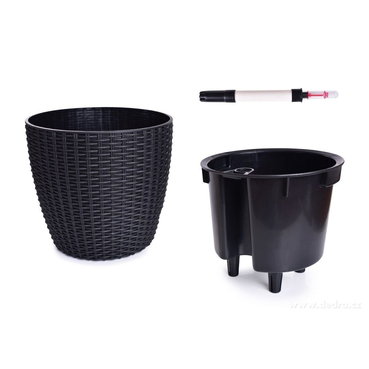 RATAN AQUARIUS - SAMOZAVLAŽOVACÍ VOLNĚ STOJÍCÍ KVĚTINÁČ imitace ratanu, se samozavlažovacím systémem a vyjímatelnou vložkou, ve spodní části vypouštěcí ventil.