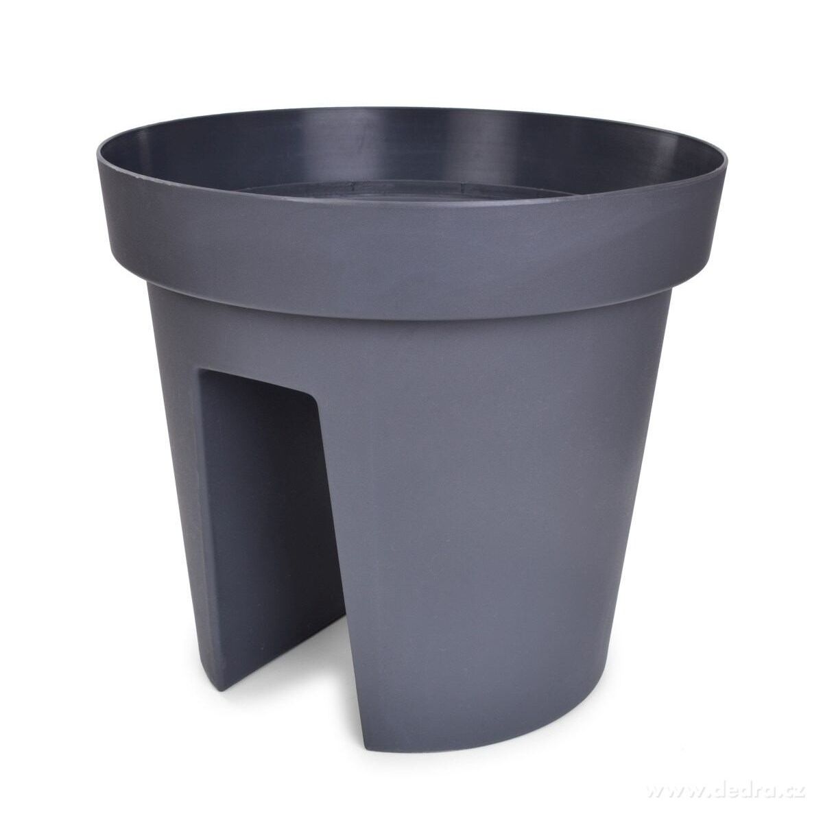 KVĚTINÁČ NA ZÁBRADLÍ s průřezem pro snadné usazení, vhodný pro zábradlí o max. šířce cca 6 cm (kulaté nebo ploché), vyrobeno z odolného plastu.Rozměry: průměr 28 cm, výška 25,5 cm