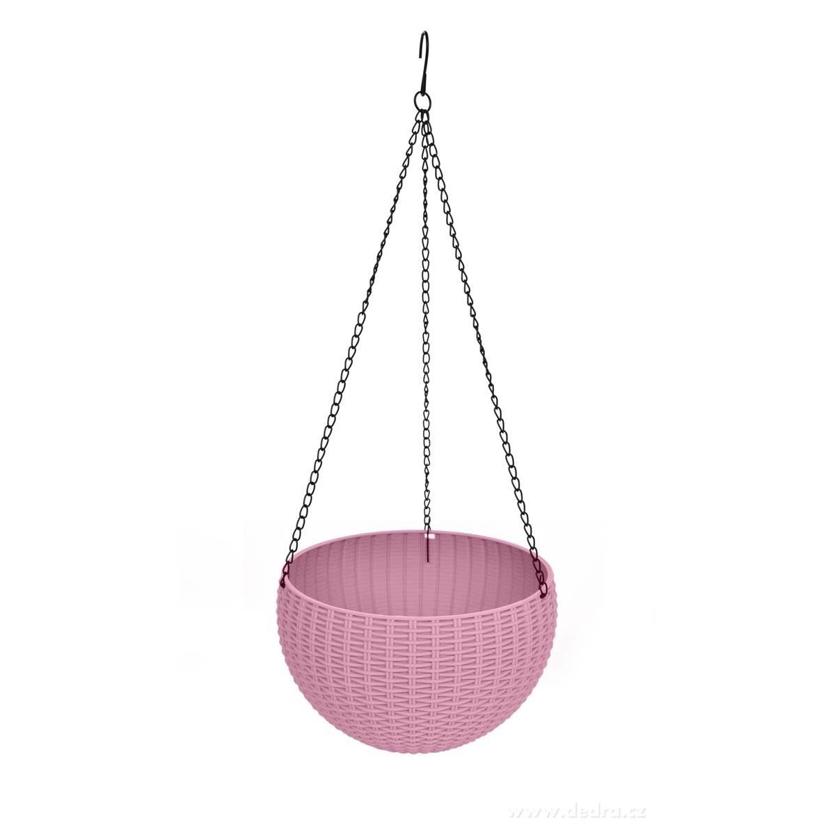 ZÁVĚSNÝ SAMOZAVLAŽOVACÍ KVĚTINÁČ imitace ratanu, součástí je vnitřní vyjímatelný rošt a kovový řetízek na zavěšení, ve spodní části vypouštěcí uzávěr. Vyrobeno z odolného plastu. Průměr 22 cm, výška 13,5 cm.