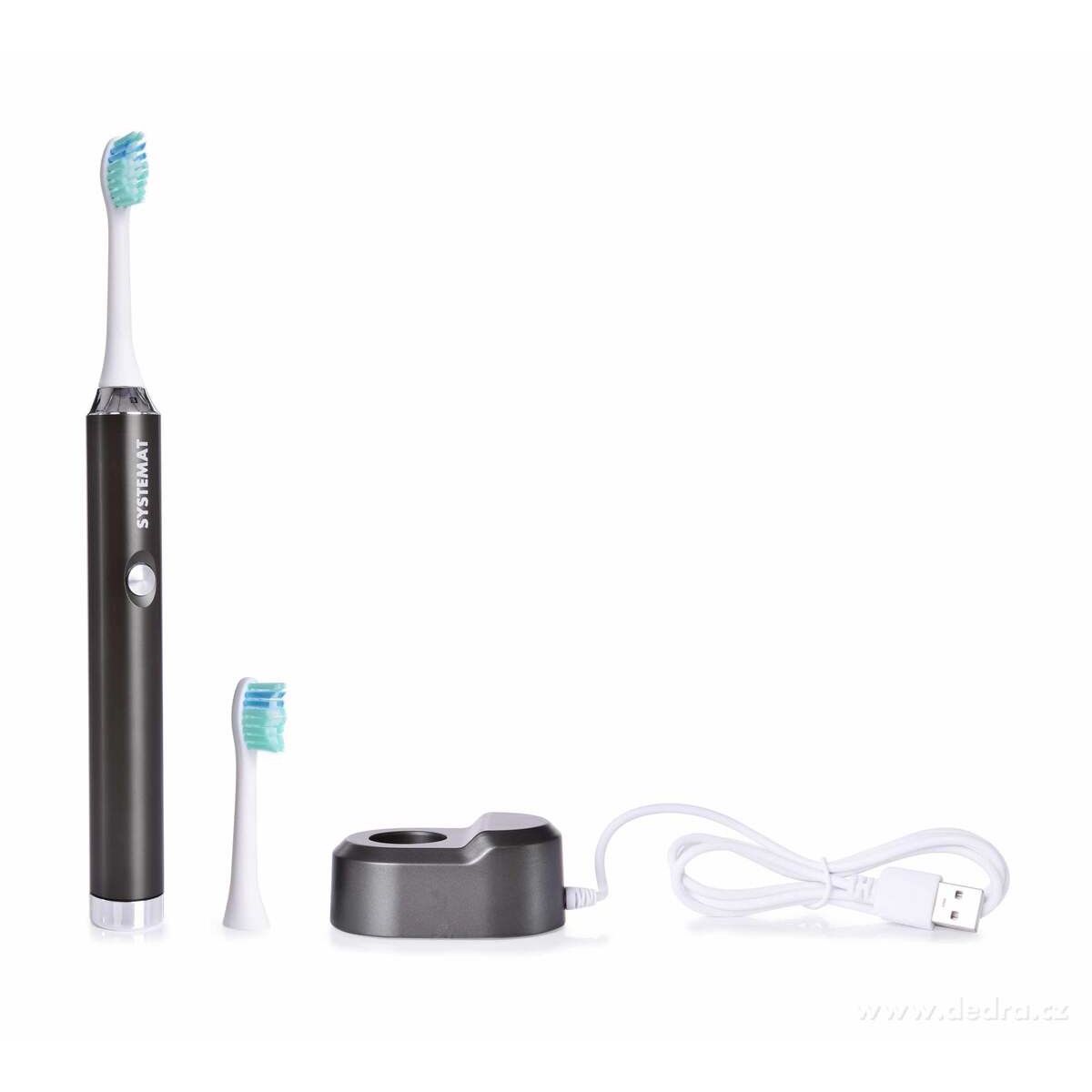 Sonický zubní kartáček SONISSIMO® DEDRA DENT® s dobíjecí základnou a USB kabelem.Rozměry kartáčku: délka 22,5 cm, průměr 2,2 cm. Rozměry základny: š 4,5 x h 7 x v 3 cm. Délka kabelu 104 cm