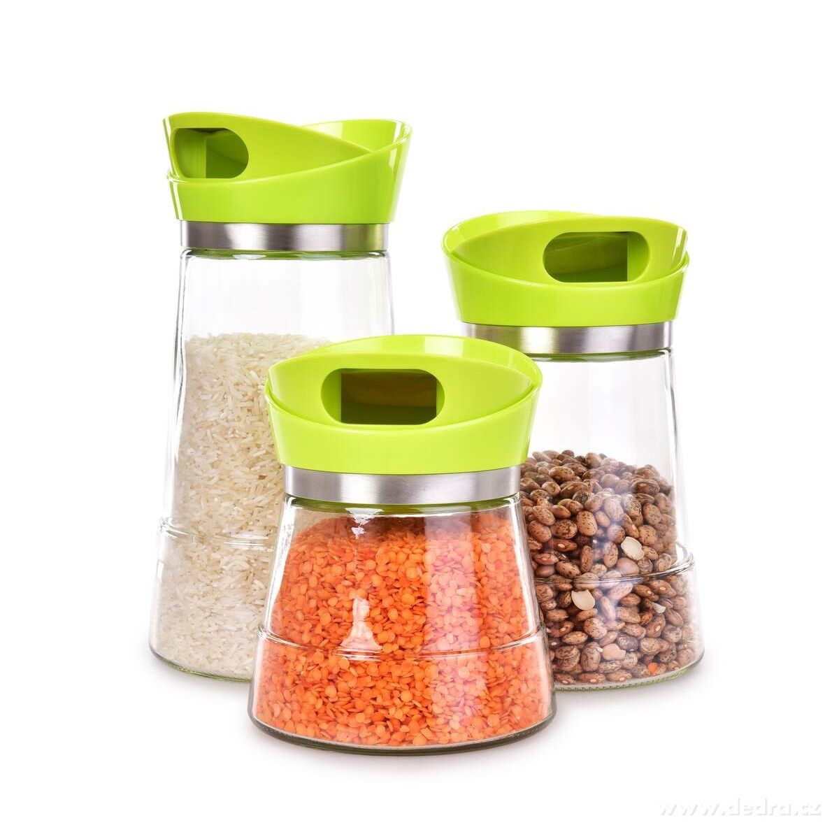 3 ks skleněné dózy na sypké potraviny s otočným víkem, zelené