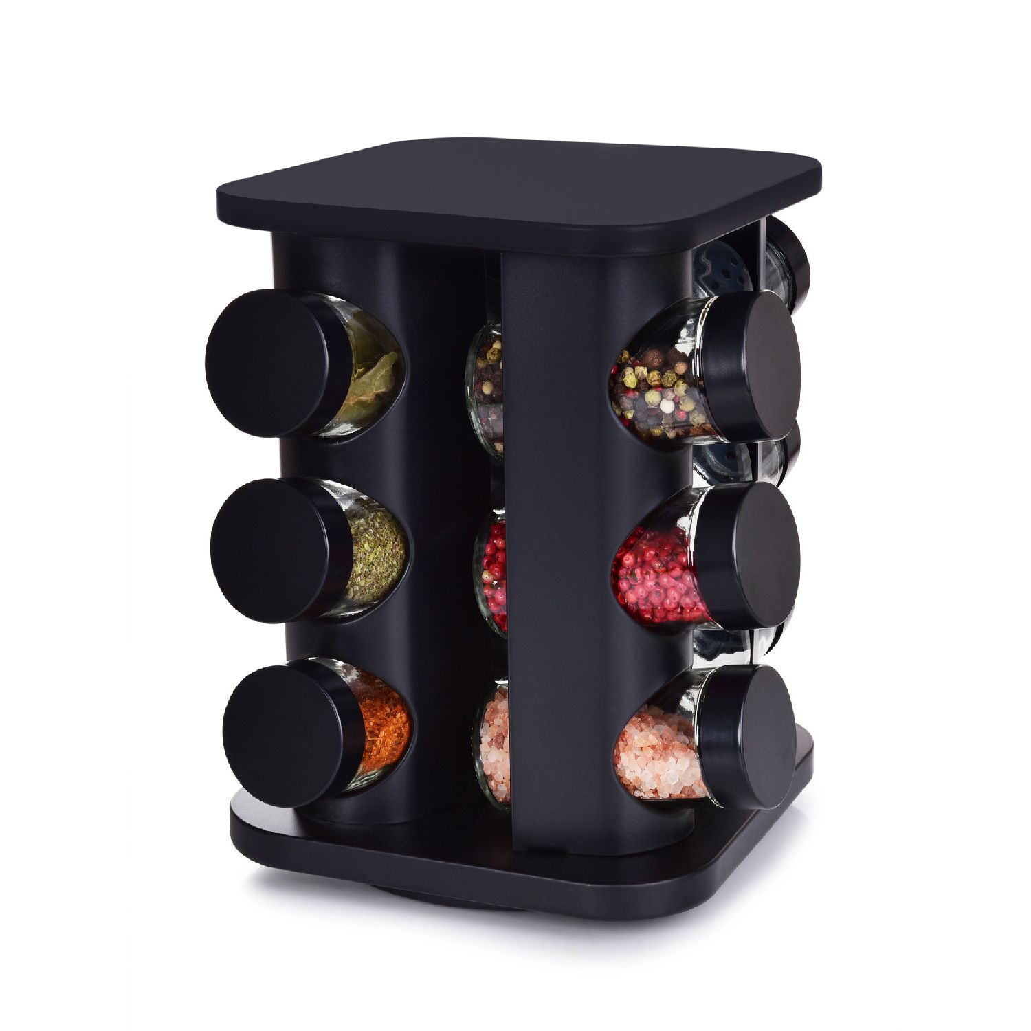 CAROUSEL | kořenkový kolotoč černý | 12 kořenek | 3patrový otočný stojan na koření 360°