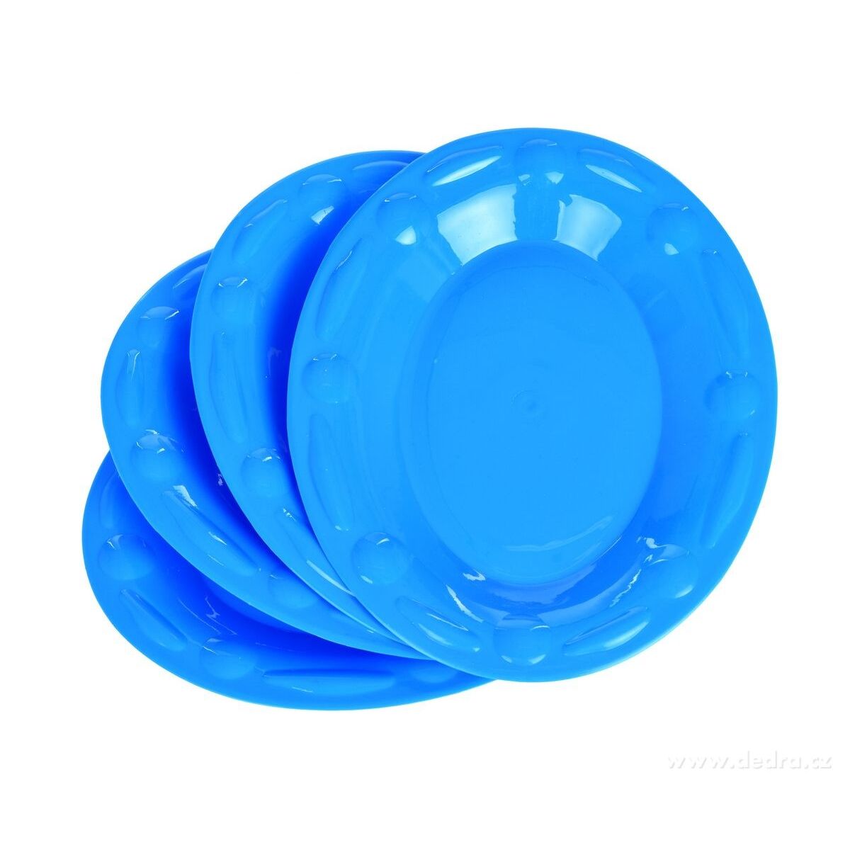 Sada 4 ks oválných talířů z odolného plastu, s ozdobnými prolisy na okrajích talířů. Rozměry: š 20,2 x h 16,4 x v 1,6 cm.