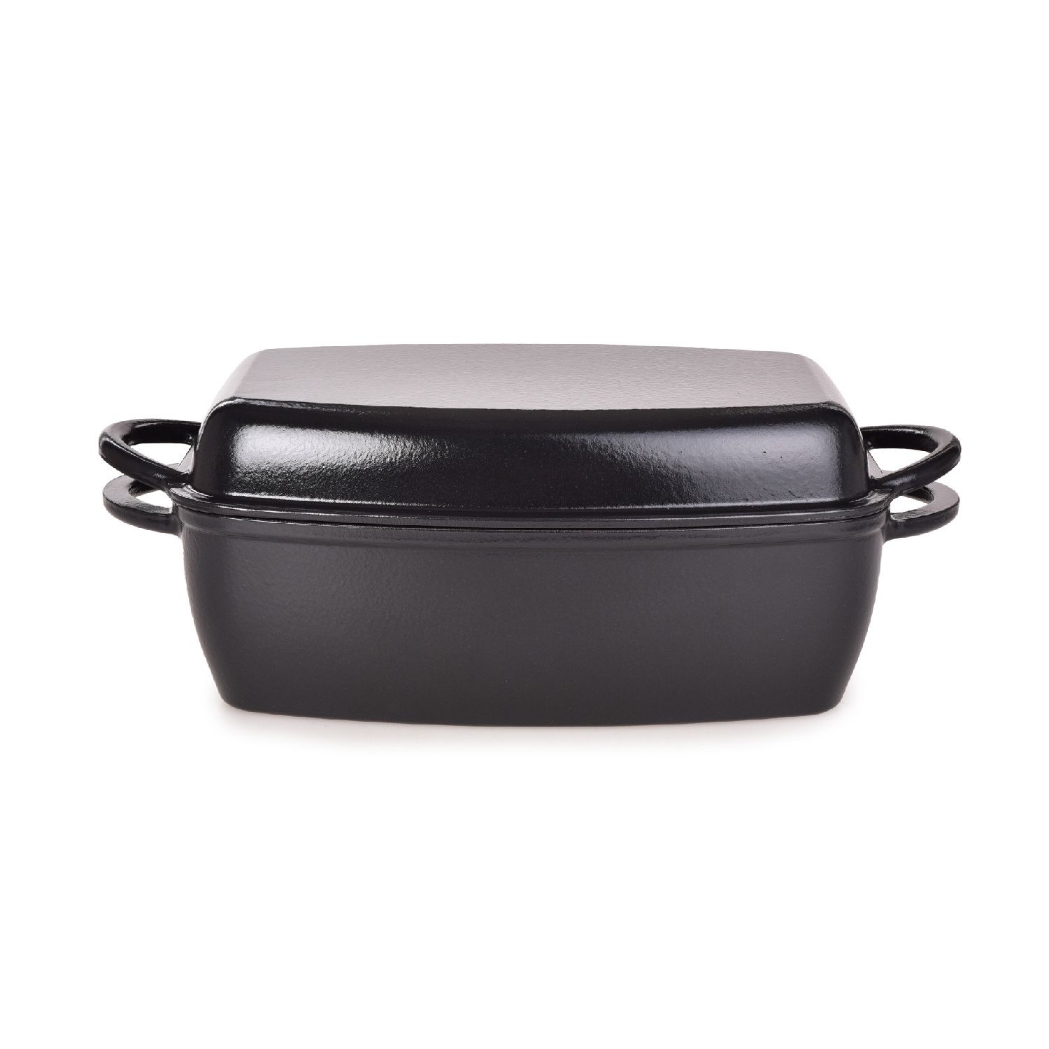 MASSIVE | velký litinový pekáč 2v1 s grilovacím víkem | RÔTISSOIRE | 4,7 L + 2 L | černý