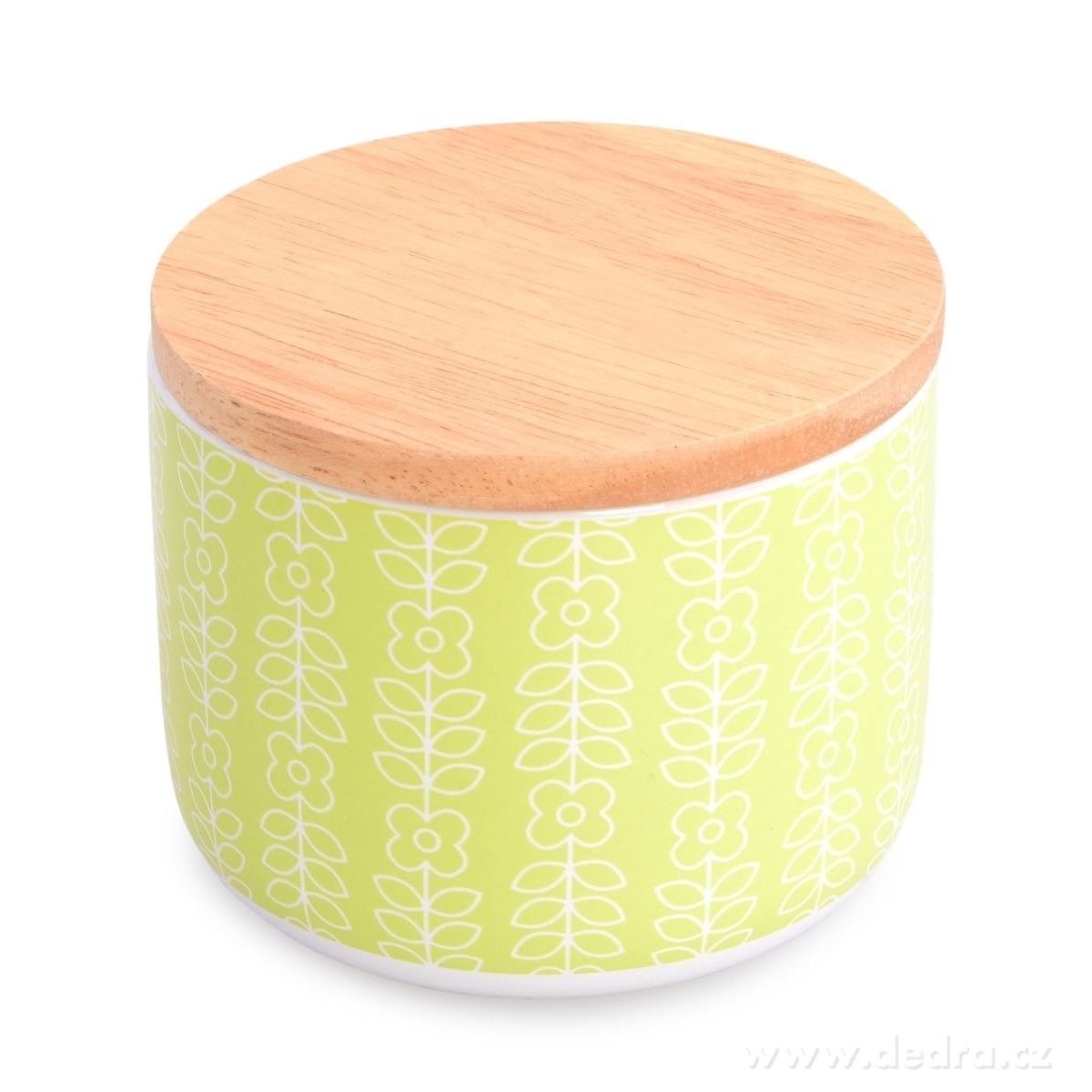 Keramická dóza s masivním víkem z vysokotlakého bambusu a silikonovým těsněním, výška 8,5 cm, průměr 10 cm, max. objem 440 ml.Víčko je zhotoveno z vysokotlakého bambusu a je opatřeno silikonovým těsněním pro pevné uzavření dózy.
