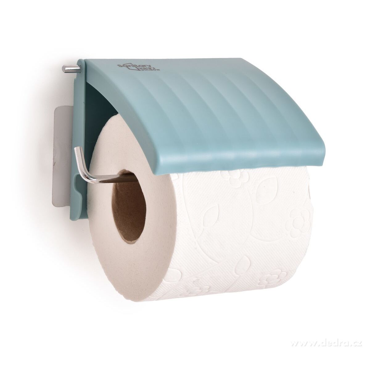BATH | nástěnný držák na toaletní papír | kov + plast | samolepicí montáž bez vrtání | pastelově modrý