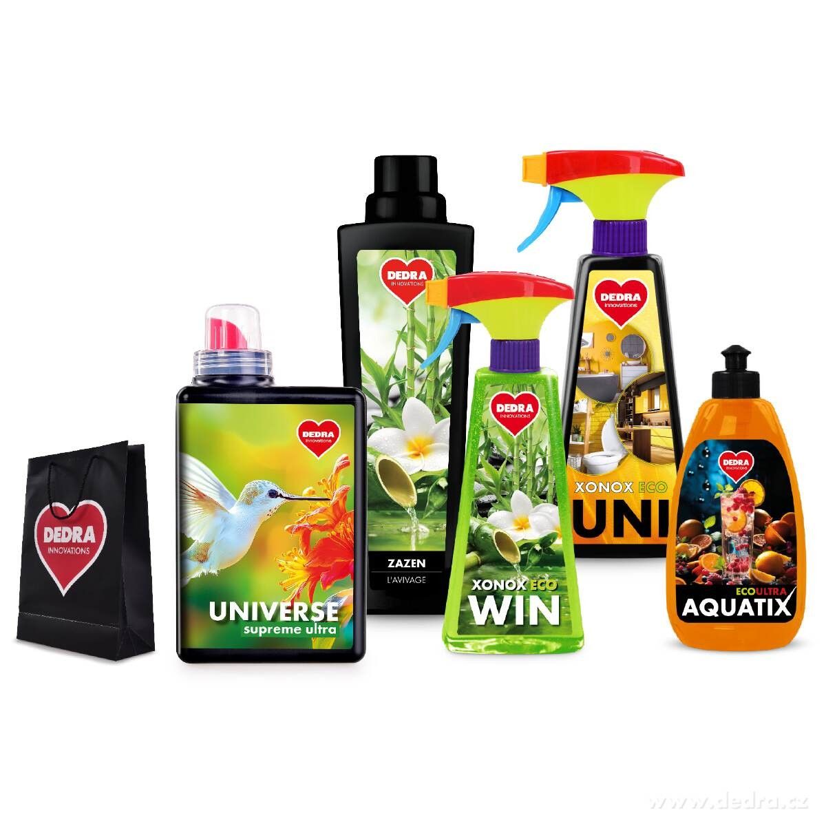 Dárková sada DEDRA ČISTÁ DOMÁCNOST je praktický dárek pro milovníky čistoty a svěžesti domova. Obsahuje univerzální prací gel, avivážní kondicionér ZAZEN, čistič na okna, univerzálnía čistič hladkých povrchů, koncentrát na nádobí a papírovou dárkovou tašku na zabalení sady. Ideální dárek pro každou domácnost!