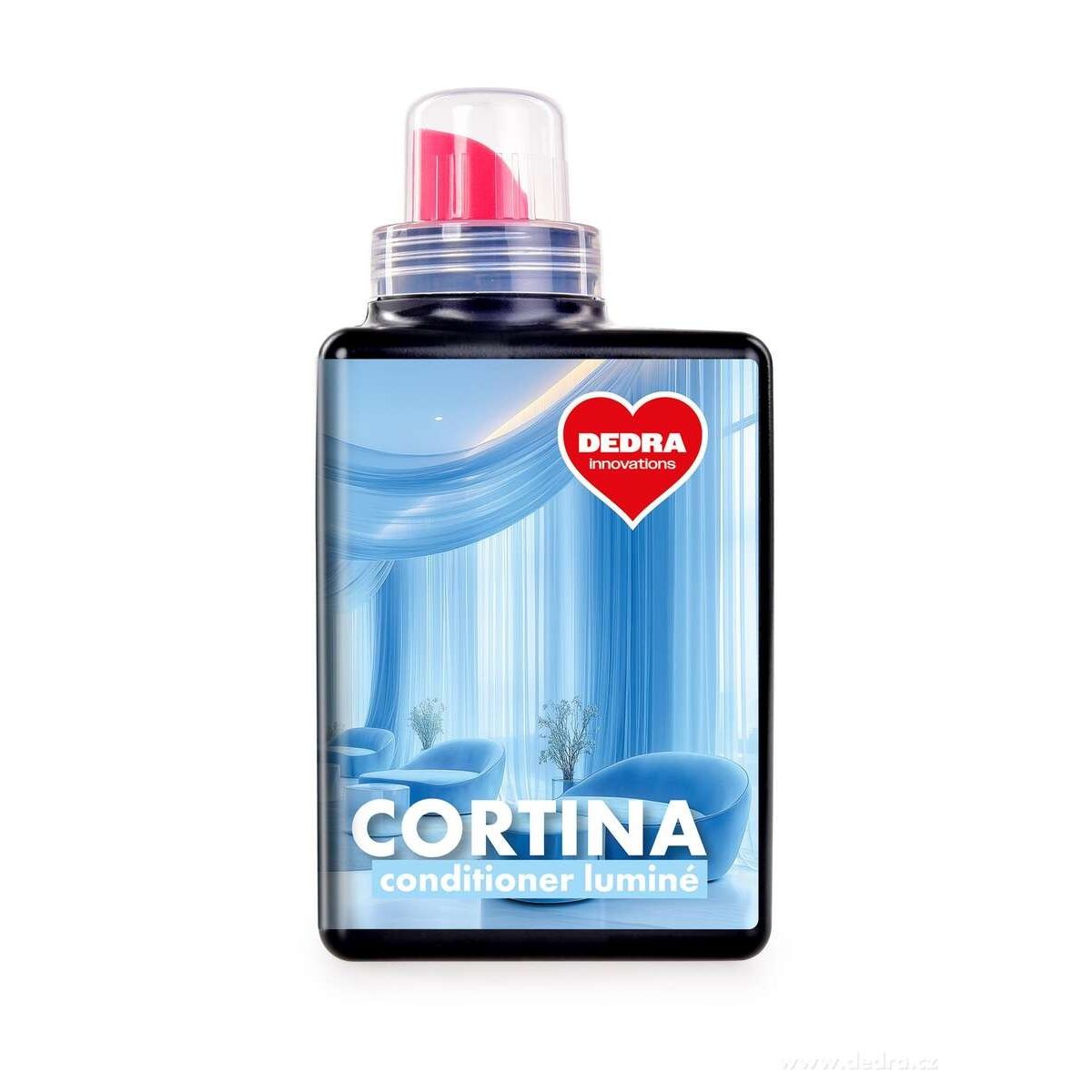 Speciální kondicionér na záclony a syntetická vlákna. CORTINA CONDITIONER LUMINÉ se používá při posledním máchání místo aviváže, zjemňuje a uhlazuje vlákna, podporuje splývavost a optické zjasnění. Ideální pro sušení záclon rovnou na okně.