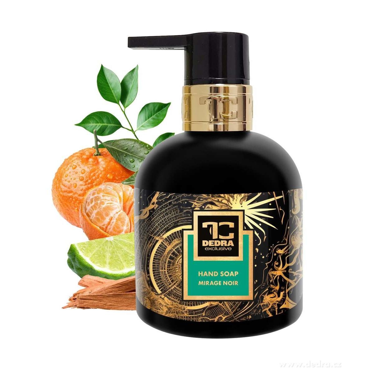 MIRAGE NOIR je výjimečné tekuté mýdlo z naší exkluzivní kolekce, které spojuje jemné čištění s intenzivní péčí a sofistikovanou parfemací. Hedvábná krémová konzistence s glycerinem a Aloe vera Barbadensis zvláčňuje, hydratuje a chrání pokožku, zatímco luxusní vůně proměňuje každodenní hygienu v smyslový zážitek.