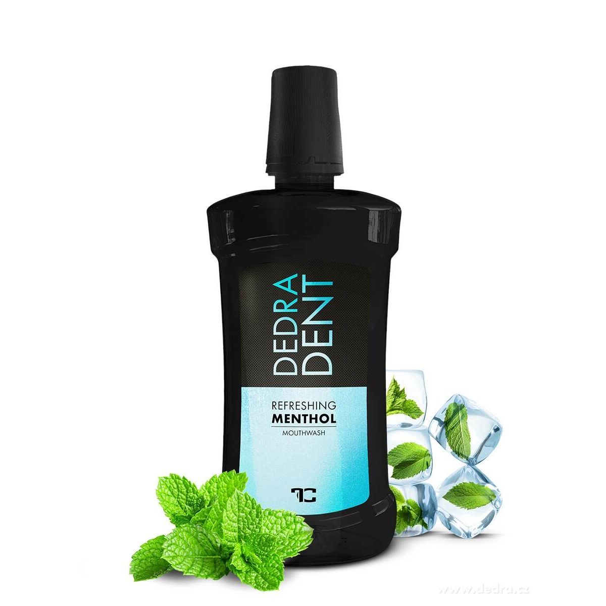DEDRA DENT® REFRESHING MENTHOL je přírodní bylinná ústní voda určená pro každodenní dlouhodobé používání. Je příjemná v ústech a nepálí jako běžné alkoholové ústní vody. Při pravidelném použití dvakrát denně poskytuje dlouhotrvající pocit svěžího dechu a pečuje o zdraví ústní dutiny.