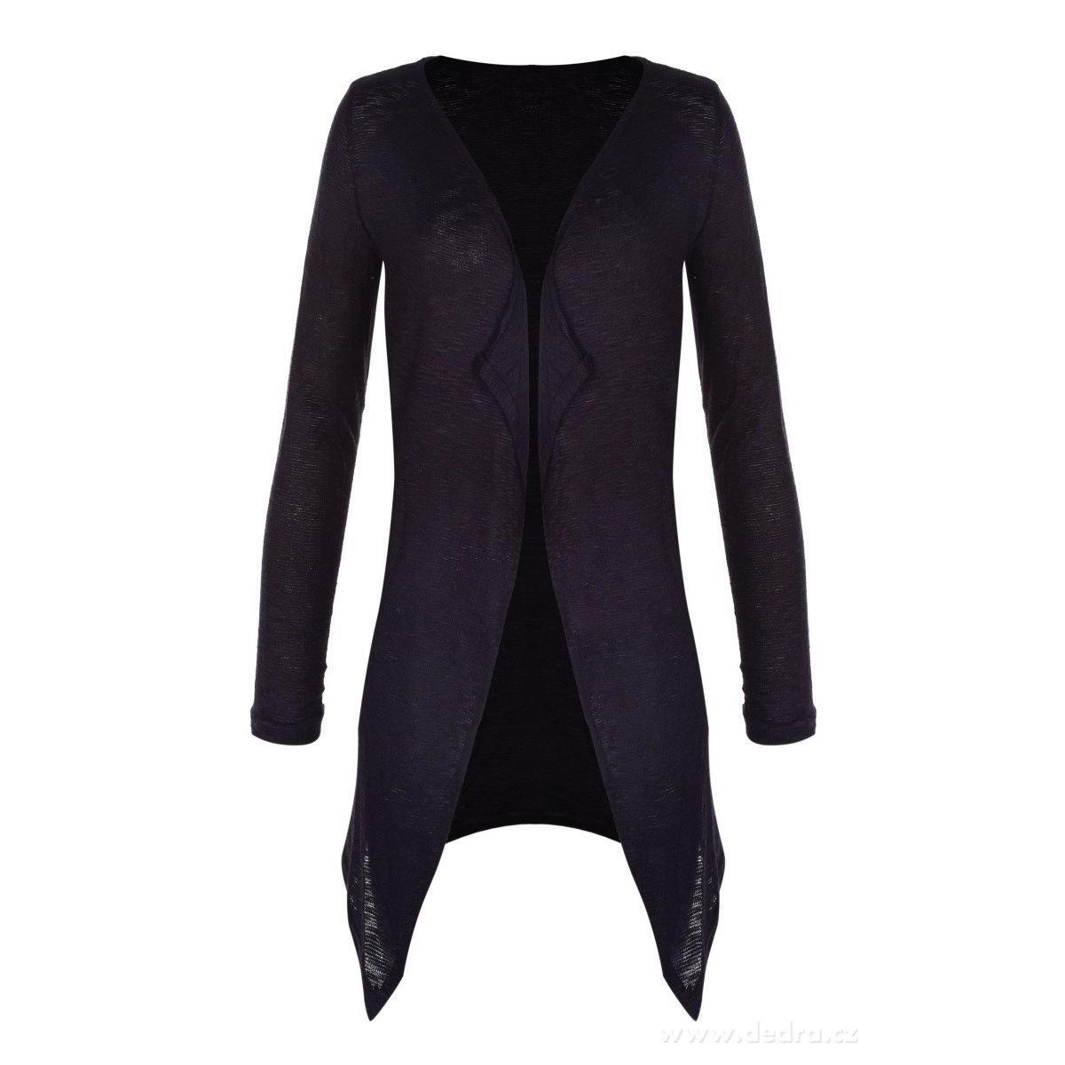 VIVIEN kardigan s dlouhým rukávem a efektním prodlouženým střihem v přední části. Příjemný lehký materiál, 65% bavlna, 35% PES. Univerzální velikost (odpovídá M – XXL). Volnější pružný střih téměř pro každou postavu.
